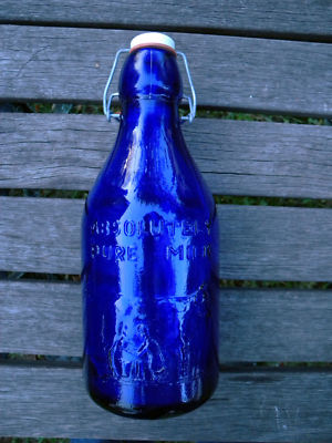 VINTAGE COBALT BLUE THATCHERS DAIRY MILK BOTTLE 1 QUART