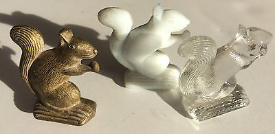 Title (ebay affiliate link): 3 Vintage Squirrel Figurines Transparent Glass, Milk Glass, Brass 2.25"