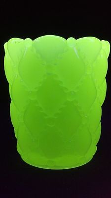 VINTAGE FENTON PINK VASELINE MILK GLASS QUILTED DIAMOND PATTERN TOOTHPICK HOLDER