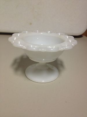 Vintage Milk Glass Small Pedestal Candy Dish 3" Tall White Lace