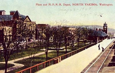 Title (ebay affiliate link): 1909 PLAZA & N. P. R. R. DEPOT - NORTH YAKIMA WASH