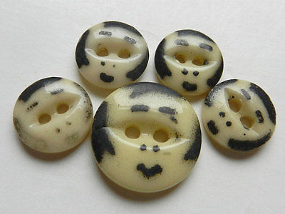 Sweet Set of 5 Pretty Antique Doll Face Painted on China Buttons
