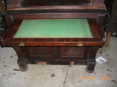 Antique Wood Desk Pull out green felt 1800s wood wheels