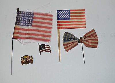 Vintage Political Lot of 5 items incl. 2 Silk Flags, and Flag Lapel pins! Look!