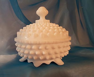 FENTON VINTAGE HOBNAIL MILK GLASS COVERED CANDY DISH