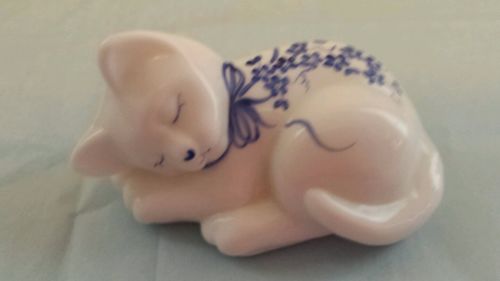 Fenton Milk Glass Sleeping Cat with Blue Floral