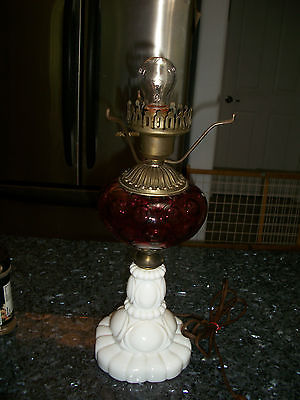 Vintage Fenton Cranberry Coin Dot with Milk Glass Base Table Lamp - No Reserve