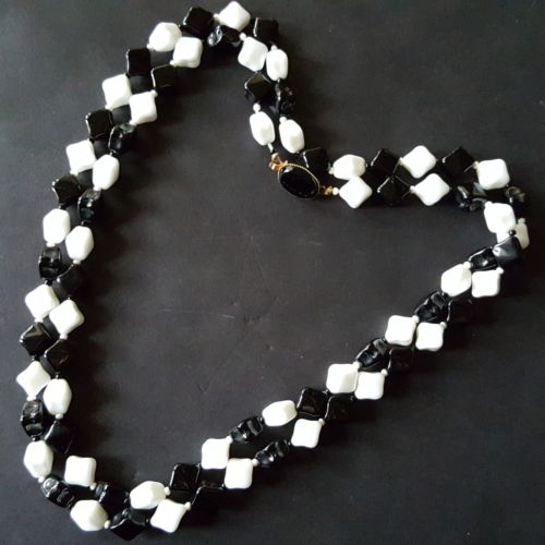Title (ebay affiliate link): Vintage 36" Necklace Black Milk Glass Geometric Molded Bead Long Neat W54