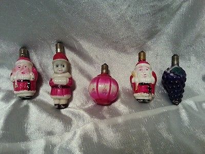 Title (ebay affiliate link): Lot of 5 Vintage Figural Milk Glass Christmas Light Bulb Santa Grapes Elf Decor