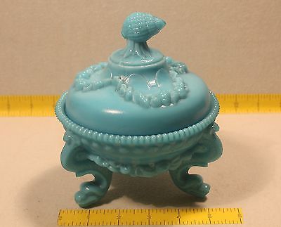 Westmoreland Blue Milk Glass Dolphin Argonaut 3 legged candy dish