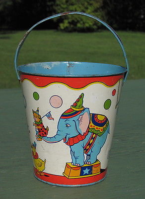 Title (ebay affiliate link): Vintage Tin SAND PAIL BEACH PAIL Circa 1940's Amazing Graphics!