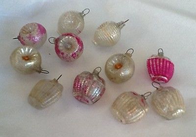Title (ebay affiliate link): Antique 1" Pink White Silver Glass Christmas Ornaments--5 Baskets/6 Indent Balls