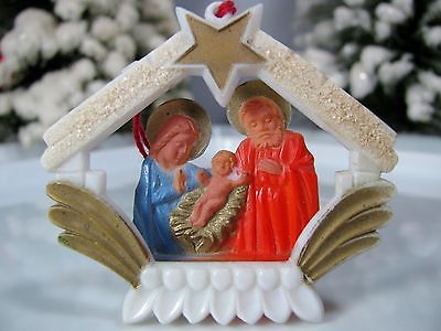 Christmas Nativity Manger Scene * vintage plastic tree ornament * Germany