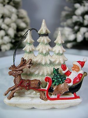 Title (ebay affiliate link): Santa in Reindeer Sleigh Scene * vintage plastic Christmas ornament * Germany