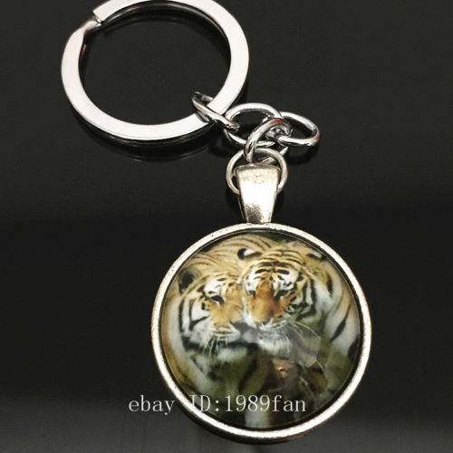 hot Vintage Tiger Cabochon Tibetan silver Glass Key Chain UE33@1