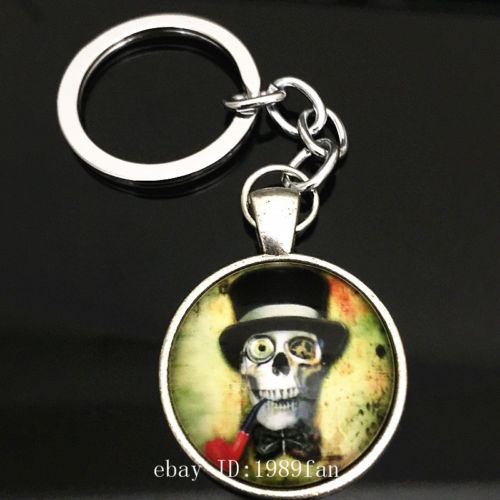 Title (ebay affiliate link): Vintage skull Keychain Cabochon Tibetan silver Glass Metal Key Ring K19`@