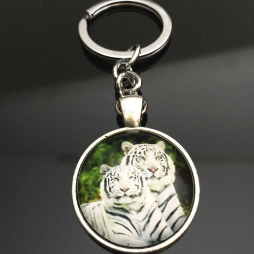 hot Vintage Tiger Cabochon Tibetan silver Glass Key Chain ysk05~@1
