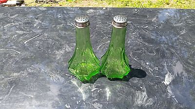 Green Vintage Depression Glass / Salt & Pepper Shakers