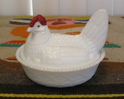 Title (ebay affiliate link): WESTMORELAND ~ MILK GLASS CHICKEN HEN - BASKET DESIGN - CANDY OR BUTTER DISH