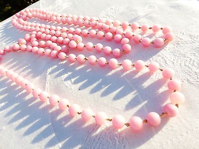 AMAZING Vintage PINK MILK GLASS Long Beaded ART DECO FLAPPER NECKLACE 66 INCHES