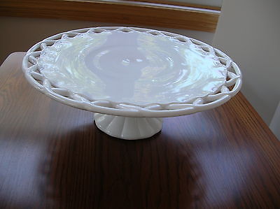 14" Milk glass pedestal cake stand plate lace edge