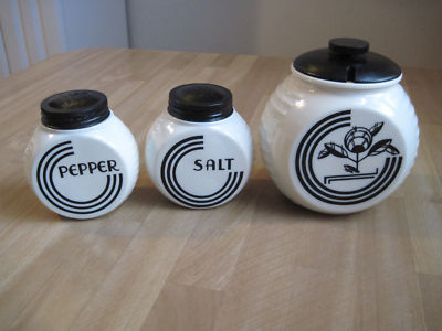 Vintage Milk Glass Art Deco Sugar / Salt & Pepper Set
