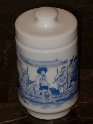 Vintage BELGIUM Oriental Scene Milk Glass Container Lid