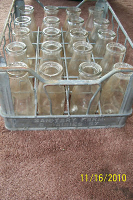 Vintage Milk Bottles With Crate Sanitary Farm Dairies