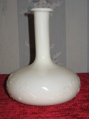 Opaque White Milk Glass Vase Tubular Bead Scrolling