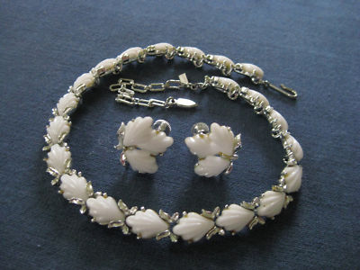 VINTAGE MOLDED MILK GLASS NECKLACE EARRINGS LONGCRAFT