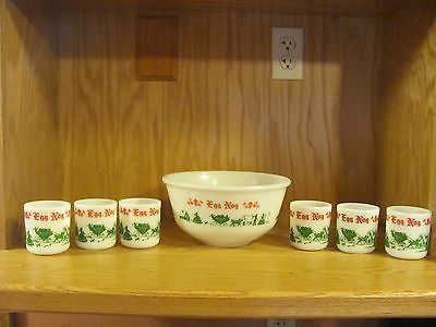 7 piece vintage hazel atlas milk glass egg nog bowl and mug set