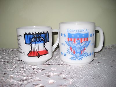 America Bicentennial Flag Liberty Bell 1776 1976 Mug Cup Milk Glass