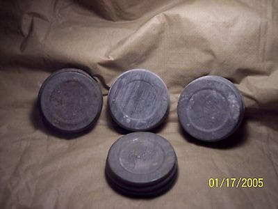 4 zinc canning lids with circles in the middle of the milk glass of 3,