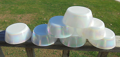 7 FEDERAL IRIDESCENT MOONGLOW WHITE MILK GLASS SOUP/CEREAL BOWLS - USA