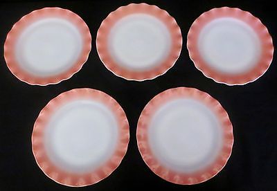 5 Hazel Atlas Crinoline Pink White DINNER PLATE 9'' Ruffled Milk Glass 1950's NR