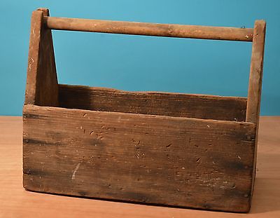 Vtg Antique Wood Wooden Handmade Tool Box Carpenter Garden Caddy Old