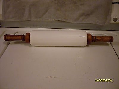 Milk glass and wood rolling pin, Imperial Mfg Co, Cambridge OH, Pat Jul 21, 1921