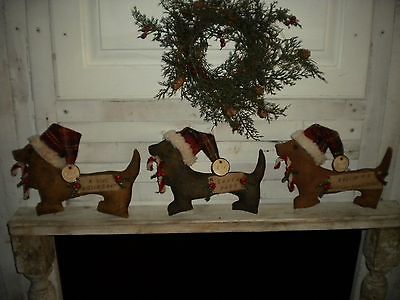 Title (ebay affiliate link): **PrimiTive ChriSTmas DachSHUnds~3~Red PLaiD SantA Hats~A LONG WIENER's NAP~PAWs