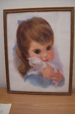 Title (ebay affiliate link): AD22) VTG NORTHERN TISSUE FRAMED PRINT GIRL WITH KITTEN BY FRANCIS HOOK 1960'S