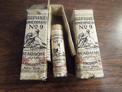 HUMPHREY'S HOMEOPATHIC NO. 9 HEADACHE FULL BOTTLE & BOX 100 YRS OLD QUACK MEDS