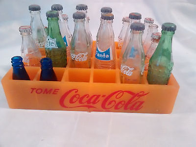 Title (ebay affiliate link): Vintage Miniature Coca Cola Bottles (21) in Yellow Crate-Mini Cokes/Fanta/Sprite