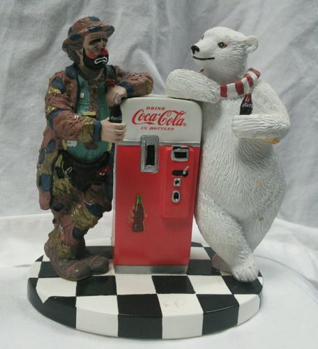 Title (ebay affiliate link): 1995 Coca-Cola Emmett Kelly Polar Bear Machine Figurine #4115 'Cool off w/ Coke'