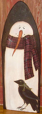 *~*PRIMITIVE*~* HP FOLK ART PRIM SNOWMEN *~* CROW *~* WINTER *~* STRETCHER