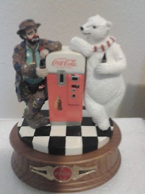 Coca Cola, Emmett Kelly, Polar Bear, Coke Machine Music Box Figurine - 1995.