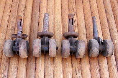 4 Vintage Double Wooden Caster Wheels Rusty & Sweaty Industrial Steampunk