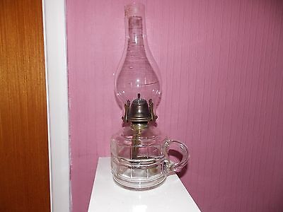 VINTAGE CLEAR GLASS BRITISH MADE FINGER HOLD OIL LAMP