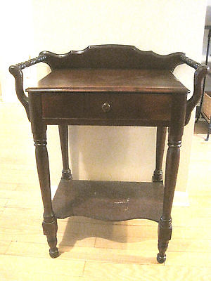 Antique Washstand with Dovetail Drawer, Wood Twist Towel Side Bars Vintage