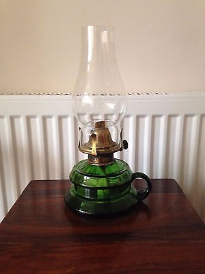 Vintage Glass Oil Lamp With Green Base Working Order Excellent Condition