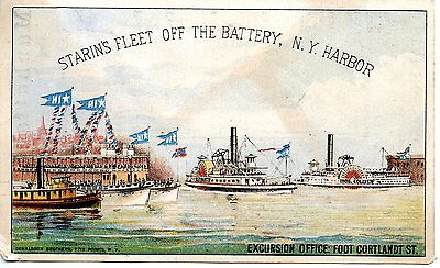 Title (ebay affiliate link): STARINS FLEET OFF THE BATTERY NY HARBOR STEAMSHIPS 1880'S TRADE CARD