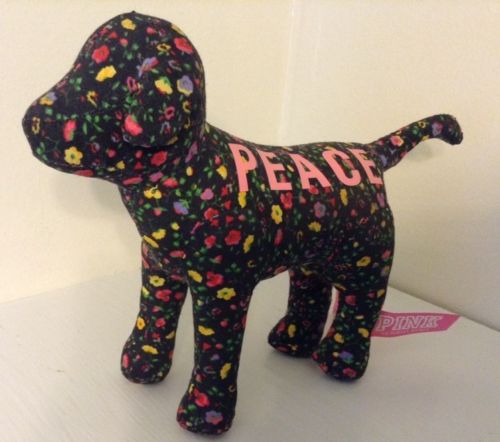 Title (ebay affiliate link): victoria's secret Plush Mini PINK Dog/ Black Multi-color Floral PEACE circa 2009